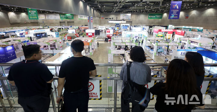 [고양=뉴시스] 홍효식 기자 = 27일 경기 고양시 일산서구 킨텍스 제2전시장에서 관람객들이 제18회 폐기물·자원순환산업전 및 차세대 분체산업전을 둘러보고 있다. 2025.08.27. [email protected]