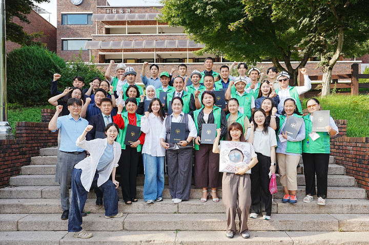 [서울=뉴시스] 조성우 기자 = 27일 경기도 성남시 새마을운동중앙회에서 열린 키르기스스탄 초청 새마을교육 수료식에서 연수생들이 기념촬영을 하고 있다. (사진=새마을운동중앙회 제공) 2025.08.27. [email protected] *재판매 및 DB 금지