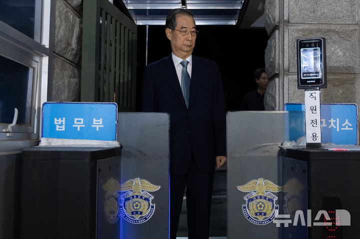 [의왕=뉴시스] 황준선 기자 = 12·3 비상계엄 관련 내란 행위 방조 혐의 등을 받는 한덕수 전 국무총리가 27일 경기 의왕시 서울구치소에서 구속 전 피의자 심문(영장실질심사)이 기각되자 구치소를 나서고 있다. 2025.08.27. [email protected]