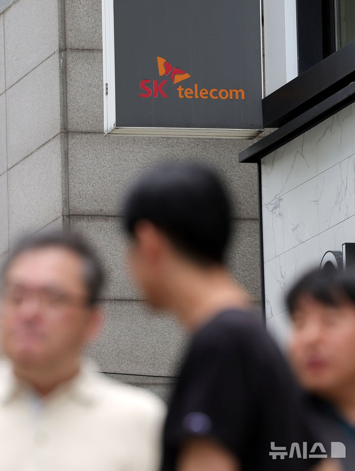 [서울=뉴시스] 홍효식 기자 = 개인정보보호위원회가 개인정보 보호 법규를 위반한 SK텔레콤에 대해 과징금 1347억9100만원과 과태료 960만원을 부과한다고 밝힌 28일 서울 시내 SK텔레콤 대리점 모습. 2025.08.28. [email protected]