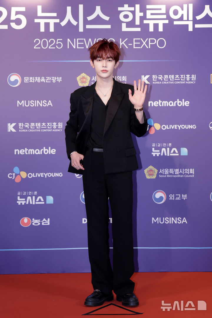[서울=뉴시스] 조성우 기자 = 그룹 제로베이스원 장하오가 28일 서울 중구 롯데호텔에서 열린 제7회 뉴시스 한류엑스포(2025 K-엑스포) 포토월 행사에서 포즈를 취하고 있다. 2025.08.28. [email protected]