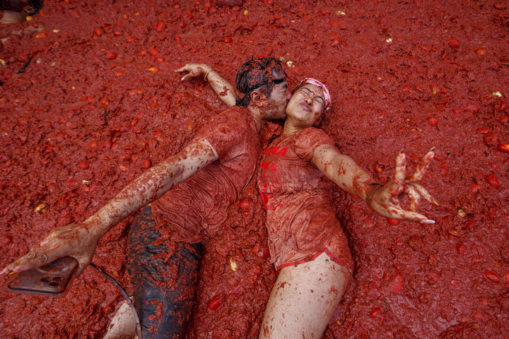 토마토 범벅 속 입 맞추는 연인들
