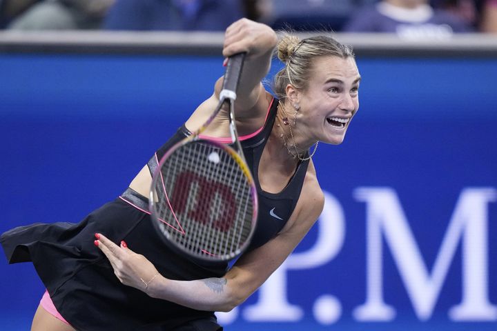 [뉴욕=AP/뉴시스] 아리나 사발렌카(1위·벨라루스)가 29일(현지 시간) 미국 뉴욕의 빌리진킹 내셔널 테니스 센터에서 열린 US 오픈 여자 단식 3회전에서 레일라 페르난데스(30위·캐나다)와 경기하고 있다. 사발렌카가 2-0(6-3 7-6)으로 이기고 16강에 올랐다. 2025.08.30.