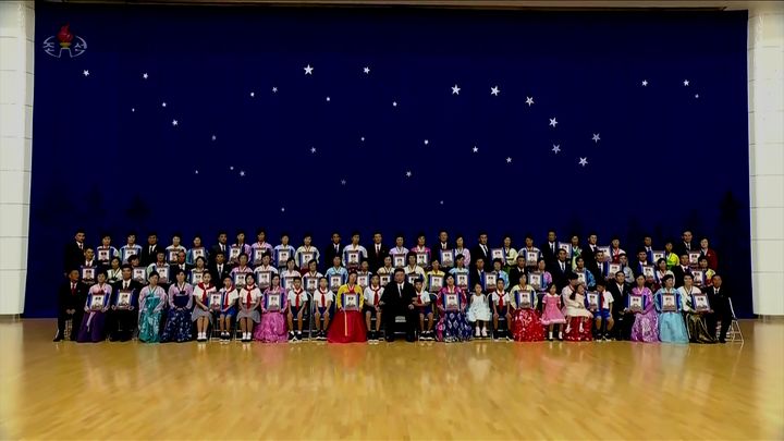 [서울=뉴시스] 김정은 북한 국무위원장이 지난 29일 평양 목란관에서 해외군사작전에서 특출한 공훈을 세운 참전열사들의 유가족들을 만나 위로했다고 조선중앙TV가 보도했다. (사진=조선중앙TV 캡쳐) 2025.08.30. [email protected] *재판매 및 DB 금지