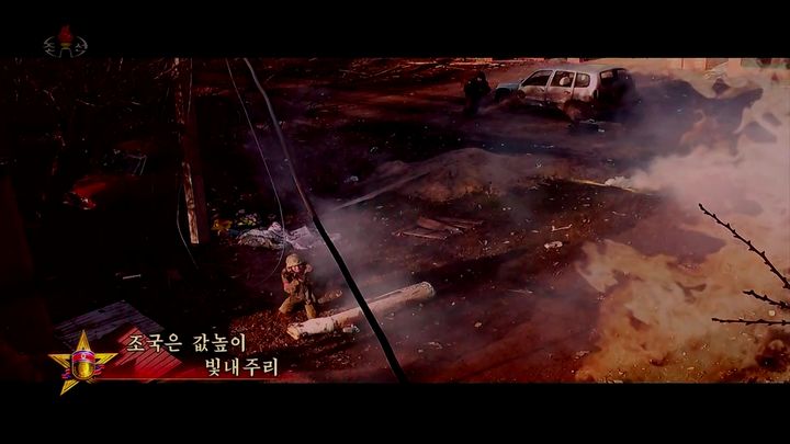 [서울=뉴시스] 북한 조선중앙TV가 30일 러시아-우크라이나 전쟁에 파병된 북한군 찬양 뮤직비디오 '기억하리'를 공개했다. (사진=조선중앙TV 캡쳐) 2025.08.30. [email protected] *재판매 및 DB 금지