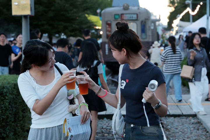 [서울=뉴시스] 추상철 기자 = 지난 30일 서울 노원구 경춘선숲길 화랑대 철도공원에서 열린 '2025 노원수제맥주축제'에서 시민들이 수제맥주를 시음하고 있다. (사진= 노원구 제공) 2025.08.31. [email protected] *재판매 및 DB 금지