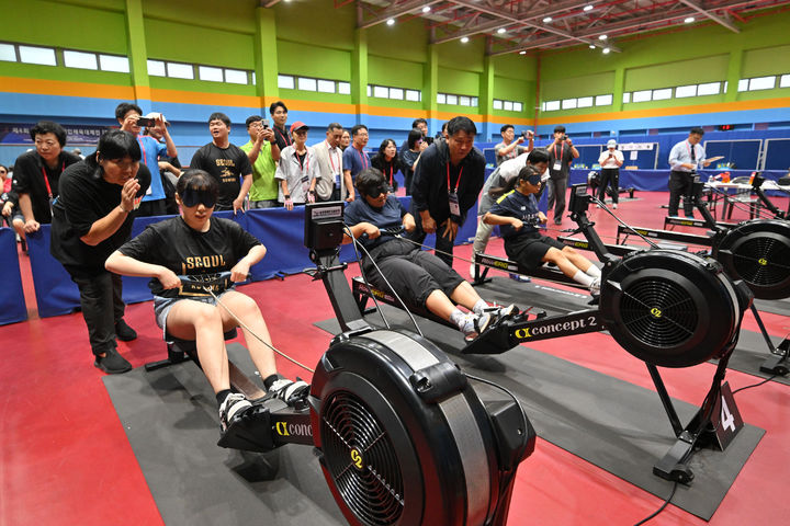 [서울=뉴시스] 최동준 기자 = 30일 경기 수원종합운동장 국민체육센터에서 제4회 전국시각장애인체육대제전 실내조정 경기가 열리고 있다.