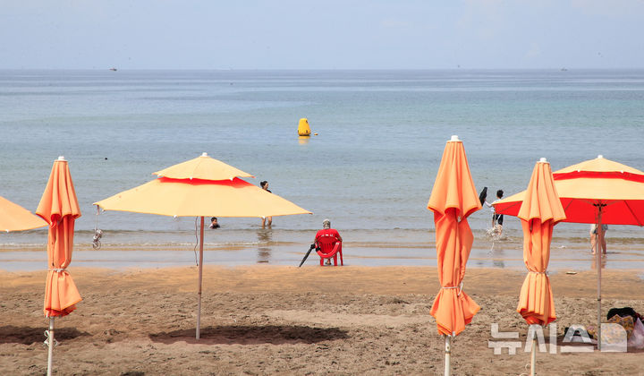 [제주=뉴시스] 우장호 기자 = 제주 도내 12개 지정해수욕장이 폐장하는 31일 오후 제주시 이호테우해숙장이 평소 주말보다 찾는 이가 없어 한산한 모습을 보이고 있다. 2025.08.31. [email protected]