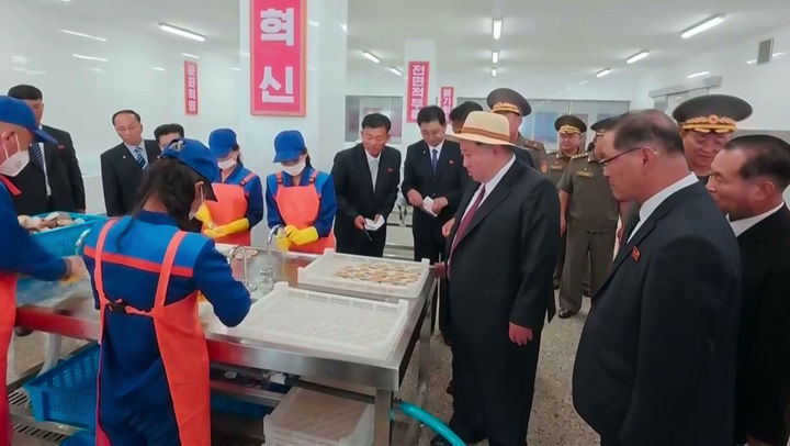 [서울=뉴시스] 김정은 북한 국무위원장이 지난 30일 함경남도 낙원군에 세워진 대규모 바다 양식기지인 낙원군바닷가양식사업소 준공식에 참석했다고 조선중앙TV가 31일 보도했다. (사진=조선중앙TV 캡쳐) 2025.08.31. [email protected] *재판매 및 DB 금지