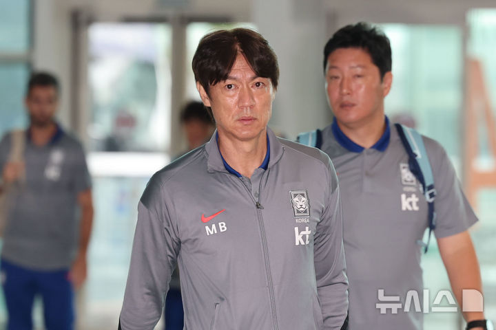 [서울=뉴시스] 권창회 기자 = 홍명보 대한민국 축구 국가대표팀 감독이 1일 오전 인천국제공항 제2터미널에서 출국 수속을 밟기 위해 이동하고 있다. 대표팀은 미국에서 오는 7일 미국, 10일 멕시코와 평가전을 치른다. 2025.09.01. [email protected]