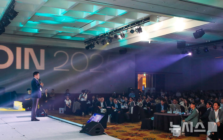 [서귀포=뉴시스] 우장호 기자 = 오영훈 제주지사가 1일 오후 제주 서귀포시 부영호텔 우정홀에서 열린 '아시아태평양경제협력체(APEC) 중소기업 장관회의' 연계 행사 '창업가 네트워킹 콘퍼런스 JOIN 2025'에서 축사를 하고 있다. 2025.09.01. [email protected]