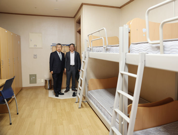 [서울=뉴시스] 정근식 서울시교육감이 1일 오후 서울 중랑구 면목고등학교를 방문해 ‘연학재’(학생 기숙사) 활용 방안을 점검하고 있다.(사진=서울시교육청 제공) 2025.09.01. [email protected]