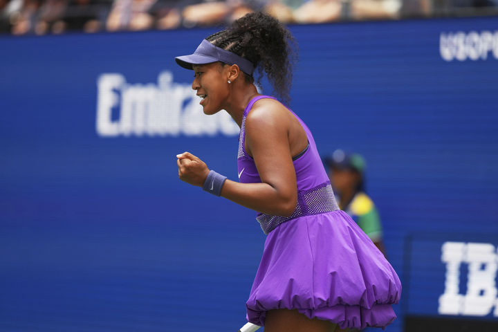 [뉴욕=AP/뉴시스] 오사카 나오미(24위·일본)가 1일(현지 시간) 미국 뉴욕의 빌리진킹 내셔널 테니스 센터에서 열린 US 오픈 여자 단식 16강전에서 코코 고프(3위·미국)와 경기하고 있다. 오사카가 우승 후보였던 고프를 2-0(6-3 6-2)으로 꺾고 메이저 대회 4년 만에 8강에 올라 카롤리나 무호바(13위·체코)와 격돌한다. 2025.09.02.