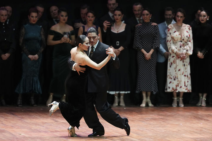 [부에노스아이레스=AP/뉴시스] 1일(현지 시간) 아르헨티나 부에노스아이레스에서 열린 세계 탱고 선수권대회 살롱 부문 우승팀인 디에고 오르테가와 알다나 실베이라(이상 아르헨티나)가 앙코르 공연을 펼치고 있다. 이 대회는 크게 살롱(Salon) 부문과 밀롱가(Milonga) 부문에서 경쟁하게 되는데 살롱 부문은 탱고의 클래식한 스타일을 중시해 정교한 발놀림과 우아한 무대 매너가 강조되는 반면, 밀롱가 부문은 보다 자유로운 스타일로, 빠른 템포와 즉흥성이 특징이다. 2025.09.02.