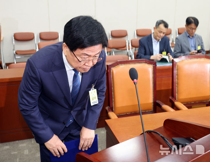 [서울=뉴시스] 김금보 기자 = 최교진 사회부총리 겸 교육부 장관 후보자가 2일 서울 여의도 국회에서 열린 교육위원회의 인사청문회에서 고개숙여 인사하고 있다. 2025.09.02. [email protected]