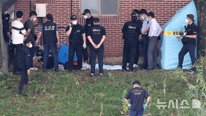 [대구=뉴시스] 이무열 기자 = 2일 대구 수성구 수성못 인근에서 육군수사단, 경찰과학수사대 등이 현장조사를 벌이고 있다.