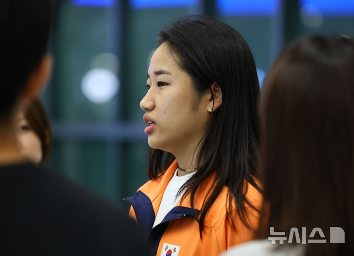 [인천공항=뉴시스] 최진석 기자 = '2025 세계개인배드민턴선수권대회'를 마치고 귀국한 안세영이 2일 오후 인천국제공항 제1터미널에서 인터뷰를 하고 있다.