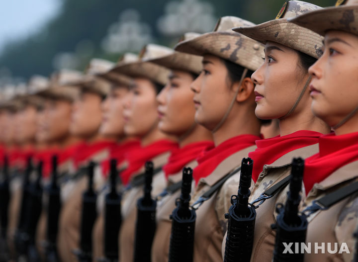 [베이징=신화/뉴시스] 3일(현지 시간) 중국 베이징 톈안먼(천안문)광장에서 중국 군인들이 '중국 인민 항일 전쟁 및 세계 반파시스트 전쟁 승리(전승절)' 80주년 기념 열병식 준비를 하고 있다. 2025.09.03.