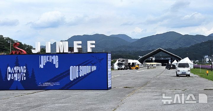 [제천=뉴시스] 이병찬 기자 = 제21회 제천국제음악영화제 개막을 하루 앞둔 3일 충북 제천시 모산동 제천비행장에 주무대와 영화제 상징물이 설치 되어 있다. 이 영화제는 4일 오후 6시 레드카펫 행사에 이어 오후 7시 공식 개막한다[email protected]