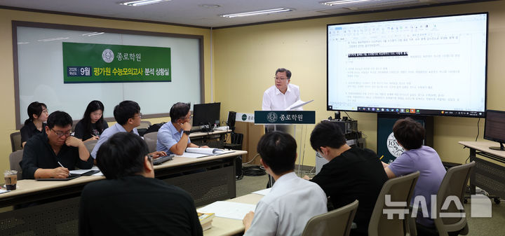 [서울=뉴시스] 김선웅 기자 = 3일 서울 양천구 종로학원 본사 문제분석 상황실에서 강사들이 수능 전 마지막 평가원 모의고사 시험 문제를 분석하고 있다. 2025.09.03. [email protected]