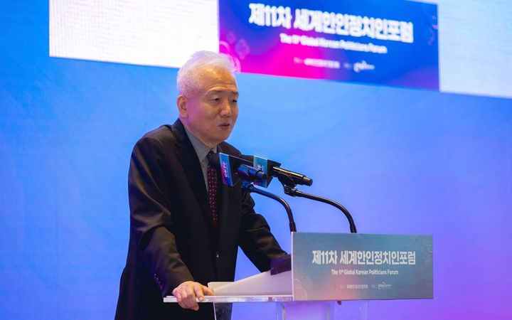 [서울=뉴시스] 2일 서울 중구 더플라자호텔에서 열린 제11차 세계한인정치인포럼에서 이상덕 재외동포청장이 축사를 하고 있다. (사진=재외동포협력센터 제공) 2025.09.03. [email protected] *재판매 및 DB 금지
