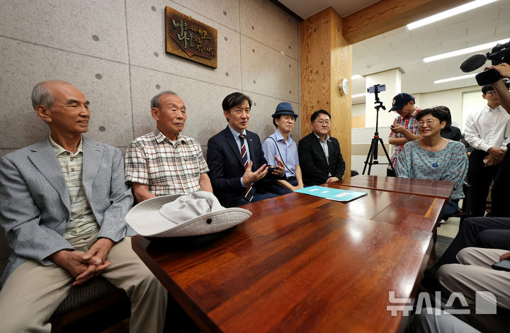 [대구=뉴시스] 이무열 기자 = 조국 조국혁신당 혁신정책연구원장이 3일 대구 수성구 사회적협동조합 지식과 세상에서 열린 지역 인사 간담회에서 발언하고 있다. 2025.09.03. [email protected]
