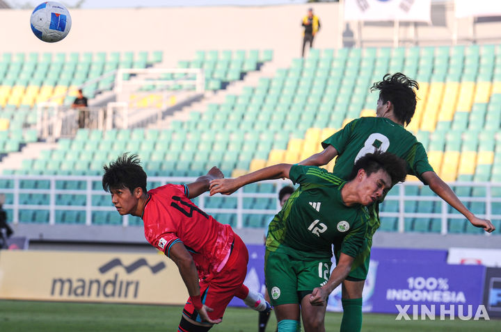 [시도아르조=신화/뉴시스] 한국 23세 이하(U-23) 축구 대표팀의 최석현(왼쪽)이 3일(현지 시간) 인도네시아 시도아르조 겔로라 델타 경기장에서 열린 '2026 아시아축구연맹(AFC) U23 아시안컵 예선 J조 1차전 마카오와 경기 중 공을 다투고 있다. 한국이 5-0 대승을 거두고 순조롭게 출발했다. 2025.09.04.
