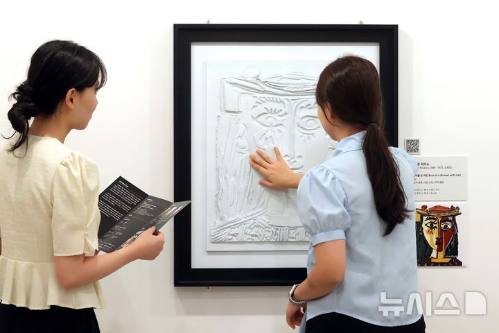 [서울=뉴시스] 박진희 기자 = 유니원커뮤니케이션즈는 한국장애인문화예술단체총연합회, 한국시각장애인연합회, 헨켈코리아 등 유관 기관들과 협업 특별전 ‘시각장애인을 위한 어두운 미술관’ 언론공개회를 4일 서울 종로구 한국장애인문화예술원 이음갤러리에서 갖고 AI·3D프린팅 기술로 재현된 명화를 선보이고 있다. 2025.09.04. [email protected]