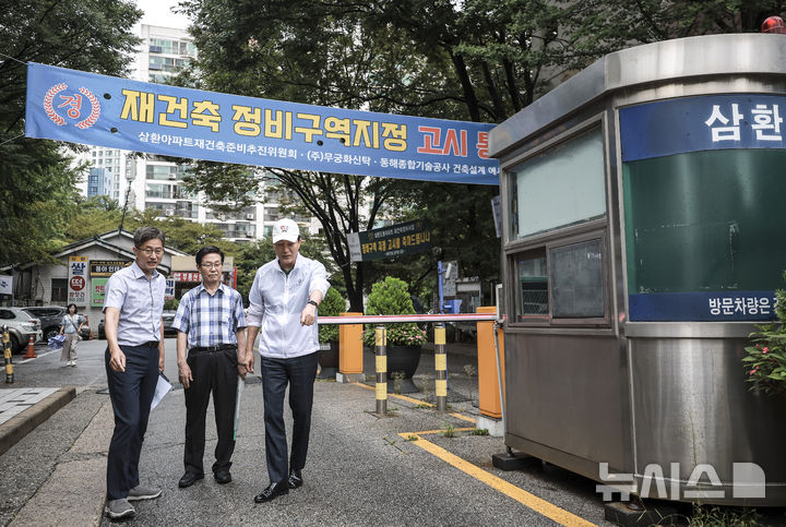 [서울=뉴시스] 정병혁 기자 = 오세훈 서울시장이 4일 서울 도봉구 삼환도봉아파트를 찾아 재건축사업 현장방문을 하고 있다. 2025.09.04. [email protected]