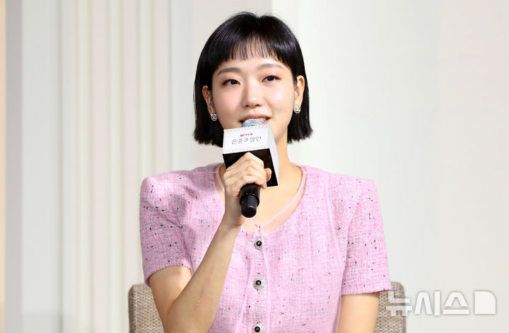 [서울=뉴시스] 김혜진 기자 = 배우 김고은이 5일 오전 서울 중구 앰버서더 서울 풀만 호텔에서 열린 넷플릭스 시리즈 '은중과 상연' 제작발표회에서 인사말을 하고 있다.