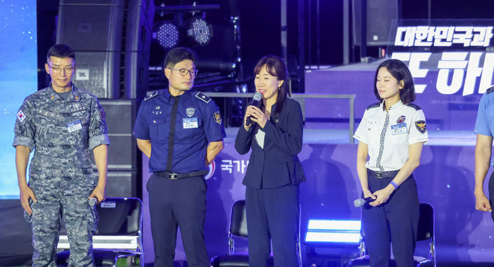 [서울=뉴시스] 조성우 기자 = 강윤진 국가보훈부 차관이 5일 서울 영등포구 한강공원 물빛무대에서 열린 제복근무자 감사토크콘서트 리스펙트 U 토크콘서트에서 인사말을 하고 있다. (사진=국가보훈부 제공) 2025.09.05. [email protected] *재판매 및 DB 금지