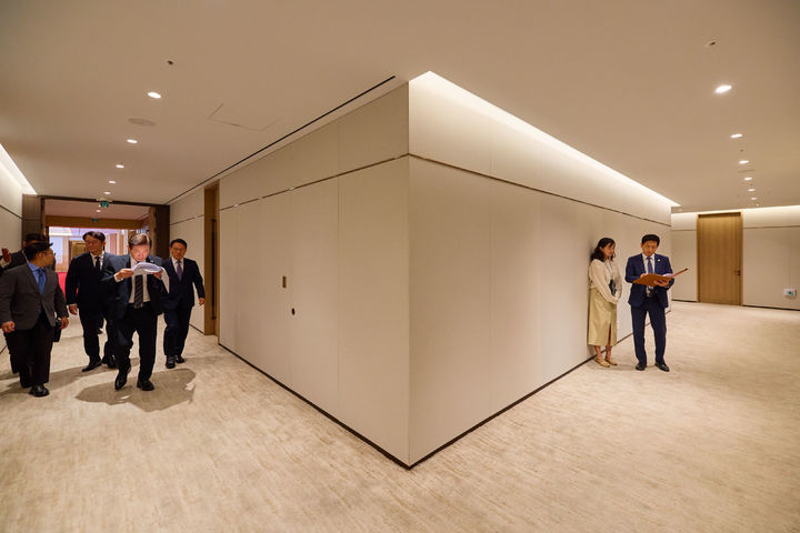[서울=뉴시스] 최동준 기자 = 대통령실은 이재명 대통령이 지난 5일 서울 용산 대통령실 청사에서 참모들과 모닝 티타임을 하기 위해 이동하는 모습을 6일 SNS에 공개했다. (사진=이재명 대통령 SNS) 2025.09.06. [email protected] *재판매 및 DB 금지
