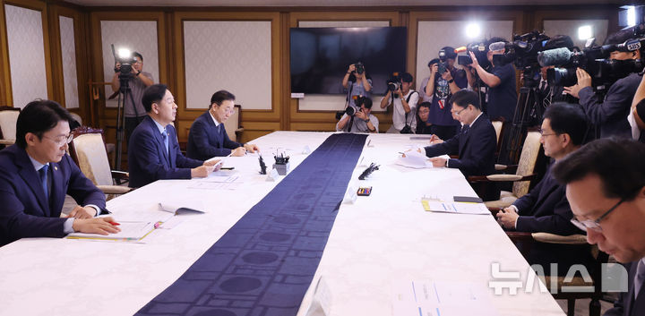 [서울=뉴시스] 김명원 기자 = 구윤철 경제부총리 겸 기획재정부 장관, 윤창렬 국무조정실장, 김윤덕 국토교통부 장관, 권대영 금융위 부위원장, 임광현 국세청장이 7일 오전 서울 종로구 정부서울청사에서 열린 부동산관계장관회의를 하고 있다. 2025.09.07. [email protected]