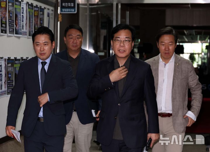 [서울=뉴시스] 조성봉 기자 = 장동혁 국민의힘 대표와 송언석 원내대표가 7일 서울 여의도 국회에서 미국 이민 당국의 한국 기업 직원 구금 사태 관련 대책회의를 하기 위해 원내대표실로 이동하고 있다. 2025.09.07. [email protected]
