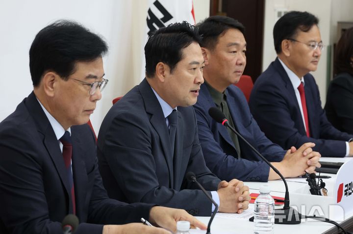[서울=뉴시스] 조성봉 기자 = 장동혁 국민의힘 대표가 7일 오후 서울 여의도 국회에서 미국 이민 당국의 한국 기업 직원 구금 사태 관련 대책회의를 마치고 발언을 하고 있다. 2025.09.07. [email protected]
