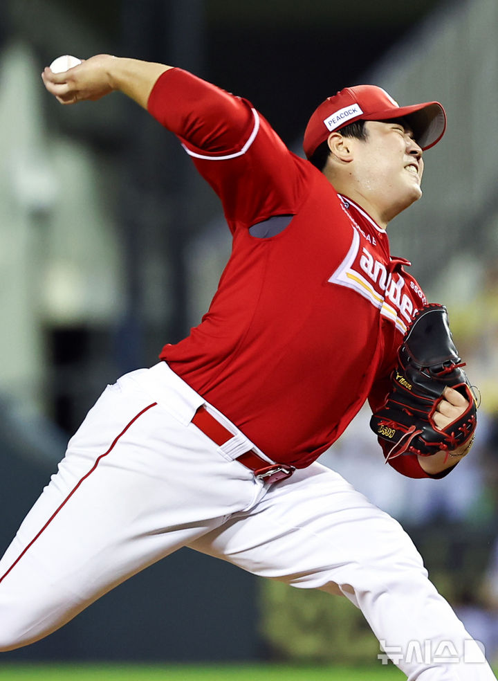 [서울=뉴시스] 최진석 기자 = 7일 서울 잠실야구장에서 열린 ‘2025 KBO리그’ SSG 랜더스와 LG 트윈스의 경기, 8회말 SSG 이로운이 역투하고 있다. 2025.09.07. [email protected]