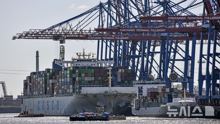 [함부르크(독일)=AP/뉴시스]2022년 3월19일 독일 함부르크항에서 크레인이 컨터에너들을 선박에 선적하고 있다. 도널드 트럼프 미 대통령의 관세가 유럽 최대 경제국 독일에 큰 타격을 입히면서 7월 독일의 대미 수출이 2021년 이후 최저치로 떨어졌다고 AFP 통신이 8일 보도했다. 2025.09.08.