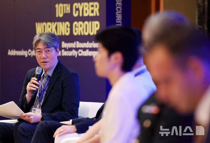 [서울=뉴시스] 홍효식 기자 = 8일 오후 서울 중구 롯데호텔에서 열린 2025 서울안보대화 제10회 사이버 워킹그룹에서 좌장인 이상근 고려대학교 정보보호대학원 인공지능연구실 교수가 발언하고 있다. 2025.09.08. [email protected]