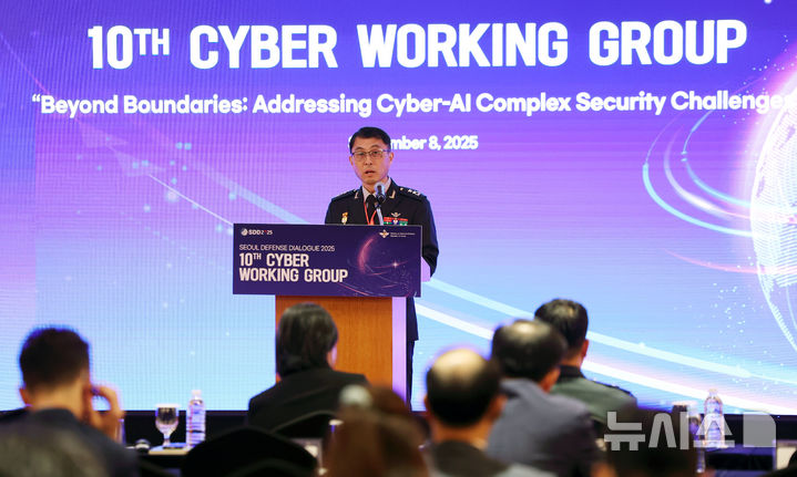 [서울=뉴시스] 홍효식 기자 = 8일 오후 서울 중구 롯데호텔에서 열린 2025 서울안보대화 제10회 사이버 워킹그룹에서 윤봉희 국방부 국방정책실장 직무대리가 개회사하고 있다. 2025.09.08. [email protected]