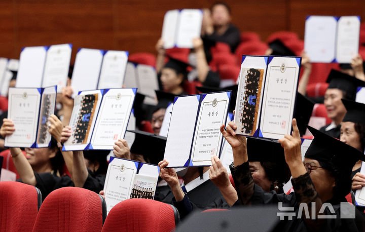[대구=뉴시스] 이무열 기자 = 9일 대구 수성구 대구시교육청 행복관에서 열린 ‘대구내일학교 초등 제13회·중학 제10회 졸업식’에서 졸업생들이 졸업장을 들고 기념촬영을 하고 있다.
