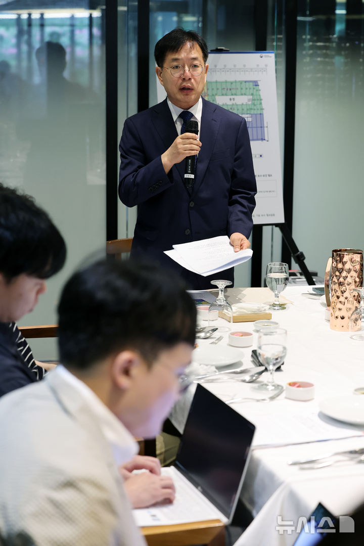 [서울=뉴시스] 박진희 기자 = 강정원 국립한글박물관 관장이 9일 서울 용산구 한글박물관 인근 한 식당에서 '박물관 화재 피해 복구계획 및 박물관 운영 방안' 등을 설명하고 있다. 2025.09.09. [email protected]
