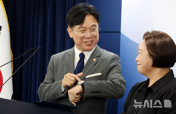 [서울=뉴시스] 추상철 기자 = 김영훈 고용노동부 장관이 10일 오후 서울 종로구 정부서울청사에서 열린 청년 일자리 대책 '일자리 첫걸음 보장제 추진방안' 발표 브리핑을 준비하고 있다. 2025.09.10. [email protected]