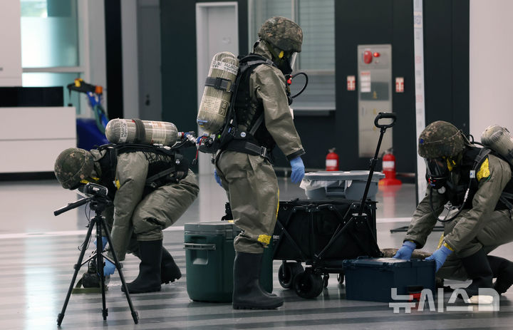 이번 훈련에는 한국공항공사, 부산지방항공청, 공군, 부산경찰청 등 13개 기관에서 100여 명이 참여한 가운데 APEC 정상회의 기간 중 공항에서 발생할 수 있는 테러상황에 대비해 불법드론 대응, 테러범 진압, 생화학 및 폭발물 처리에 대한 단계별 대응 절차 등을 종합적으로 점검했다. 2025.09.11. [email protected]