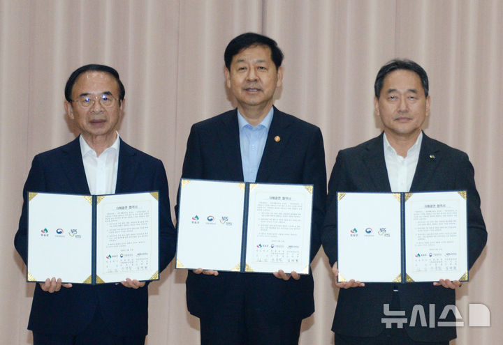 협약서 들고 기념촬영 하는 구윤철 부총리