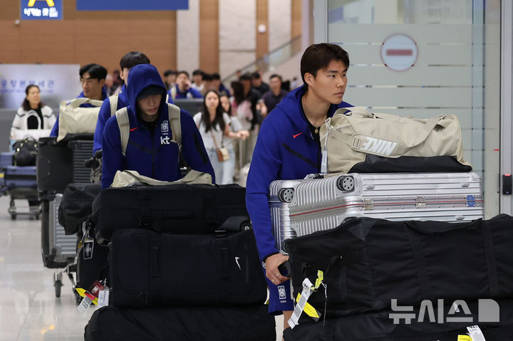 [인천공항=뉴시스] 권창회 기자 = 대한민국 축구대표팀 선수들이 11일 미국과 멕시코 친선전을 마치고 인천국제공항 제2여객터미널을 통해 귀국하고 있다. 2025.09.11. [email protected]