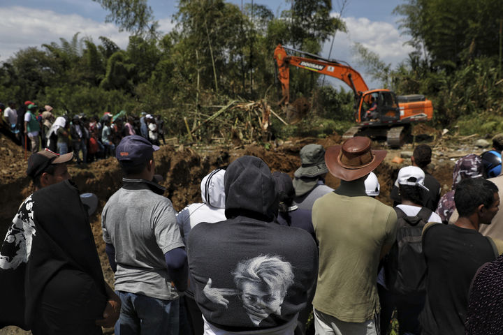 [산탄데르 데 킬리차오=AP/뉴시스] 12일(현지 시간) 콜롬비아 카우카주 산탄데르 데 킬리차오에서 불법 금광 붕괴로 매몰된 광부들의 친인척들이 수색 작업을 지켜보고 있다. 지난 11일 밤 발생한 산사태로 갱도가 막히면서 광부 7명이 갇혔으며 이들의 생사는 확인되지 않았다. 2025.09.13.