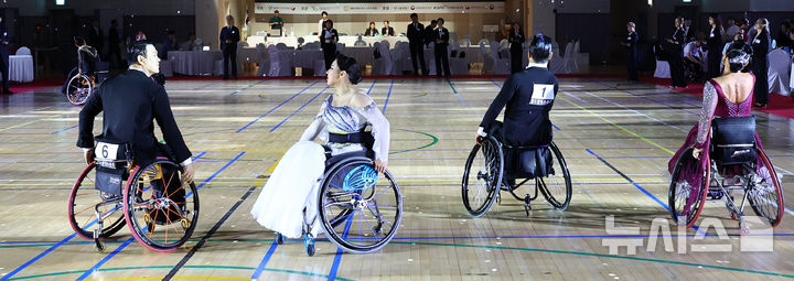 [서울=뉴시스] 박주성 기자 = 14일 서울 서초구 서초종합체육관에서 열린 2025 서울특별시장배 전국장애인댄스스포츠 선수권대회(제3차 국가대표선발전)에서 참가 선수들이 대회를 치르고 있다. 2025.09.14. [email protected]