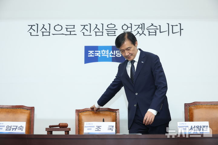 [서울=뉴시스] 고승민 기자 = 조국 조국혁신당 비상대책위원장이 15일 서울 여의도 국회에서 열린 비대위 회의에 참석하고 있다. 2025.09.15. [email protected]