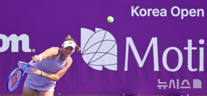 [서울=뉴시스] 최진석 기자 = 15일 서울 올림픽공원 테니스경기장에서 열린 국제 여자 프로 테니스 대회 'WTA 500 코리아오픈 2025' 미국 애슐린 크루거와 독일 이바 리스의 32강 경기, 크루거가 서브를 넣고 있다. 2025.09.15. [email protected]