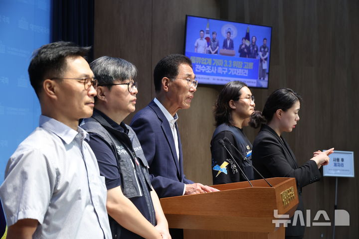 [서울=뉴시스] 조성봉 기자 = 김주영 더불어민주당 의원이 17일 오전 서울 여의도 국회 소통관에서 열린 물류업계 가짜 3.3 위장고용 전수조사 촉구 기자회견에서 발언을 하고 있다.2025.09.17. [email protected]